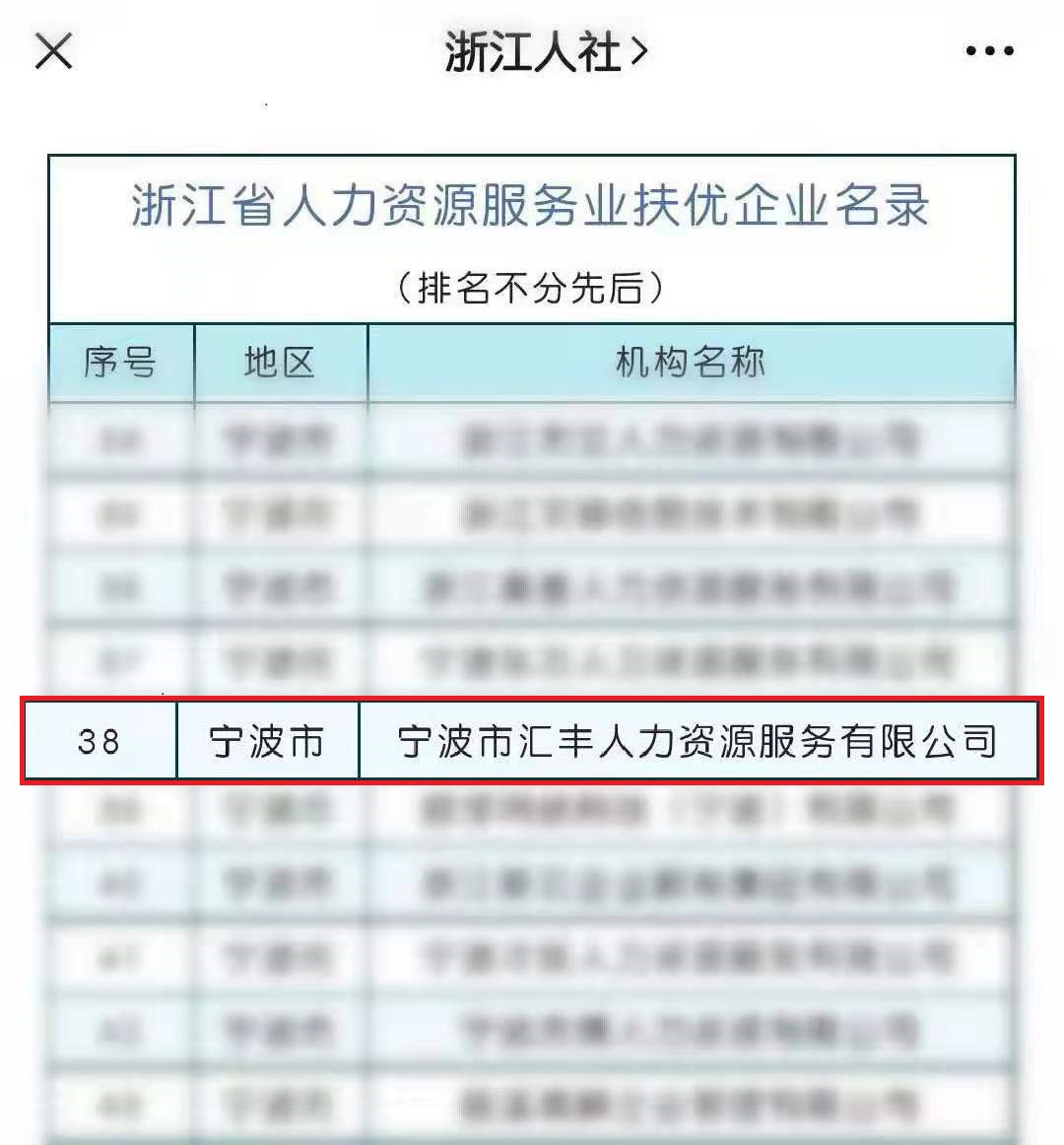 喜报 | 汇丰人力被纳入 “ 浙江省人力资源服务业扶优企业 ”
